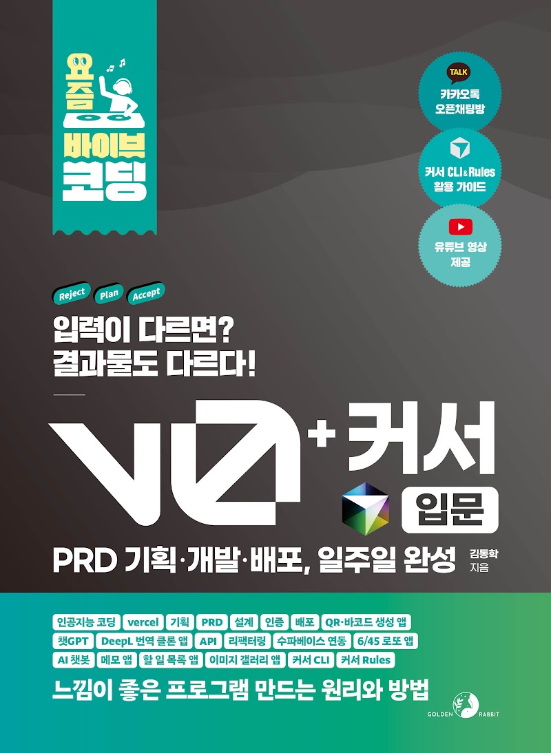 인공지능 코딩, vercel, 기획, PRD, 설계, 인증, 배포, QR·바코드 생성 앱, 챗GPT, DeepL 번역 클론 앱, API, 리팩터링, 수파베이스 연동, 6/45 로또 앱, AI 챗봇, 메모 앱, 할 일 목록 앱, 이미지 갤러리 앱, 커서 CLI, 커서 Rules